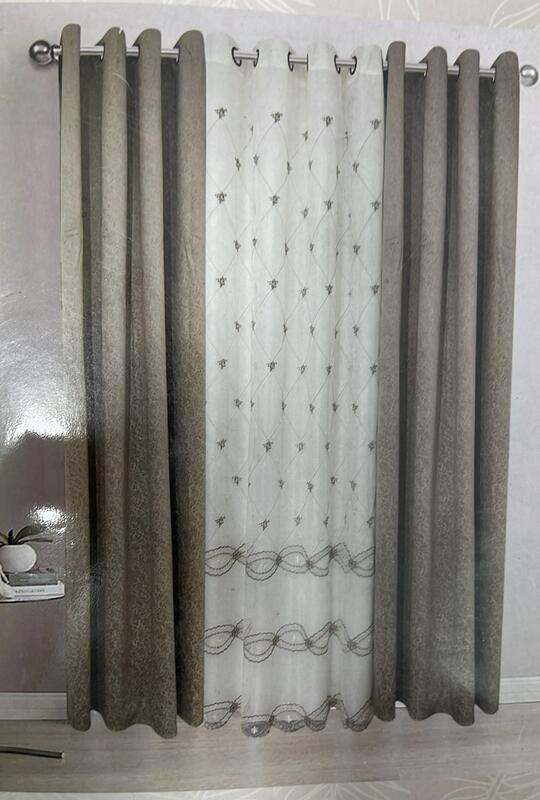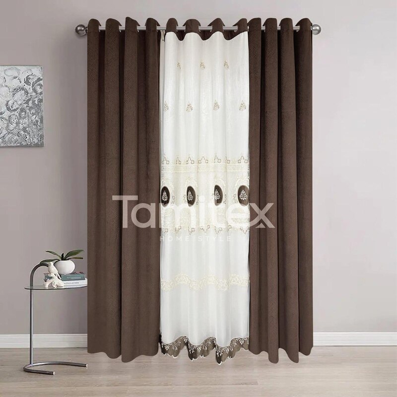 طقم برادي Dana (3 قطع) المصنوع من المخمل الإيطالي بالغ النعومة على الجوانب مع قطعة شيفون تطريز بالمنتصف .. مقاس كل قطعة 140 سم العرض و 250 سم الطول